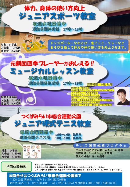 つくばみらい市総合運動公園では現在3つの教室を開催中です。